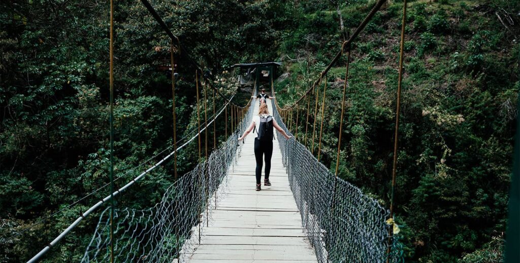 After lunch we will be hiking through the rain forest, following the path of the Santa Teresa river. This portion of the trek has up and down portions and lasts approximately 5 to 6 hours. We will have the opportunity to see multiple coffee plantations, banana plantations, and fields of passion fruit. Along this path you will also see the most beautiful waterfall along the Salkantay trek to Machu Picchu.